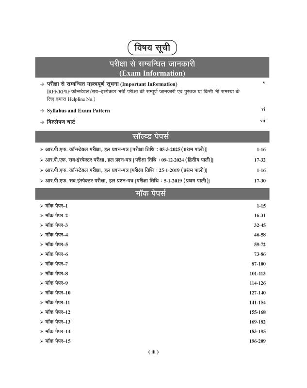 This RPF/RPSF Constable/Sub-Inspector (Executive) book is specially designed for male and female candidates appearing in the RPF/RPSF recruitment exam.It contains 15 mock papers and 4 solved papers based on the latest syllabus and paper pattern (2019-2025).The RPF/RPSF Constable/Sub-Inspector Practice Sets are crafted to reflect the real exam experience and help candidates enhance their speed, accuracy, and confidence through consistent practice.